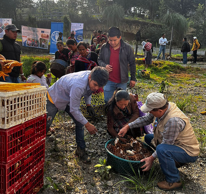 Asimismo, en el municipio de Chajul, se benefició a 315 personas con semillas de hortalizas y a 338 comunitarias y comunitarios con gallinas ponedoras.