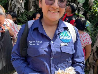 La extensionista de Agricultura Familiar, se sumó a las acciones en el campo con el acompañamiento necesario para asegurar el correcto manejo de los cultivos y la sostenibilidad de los huertos.