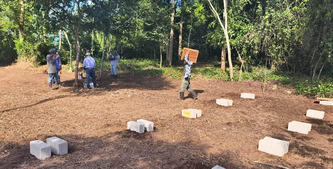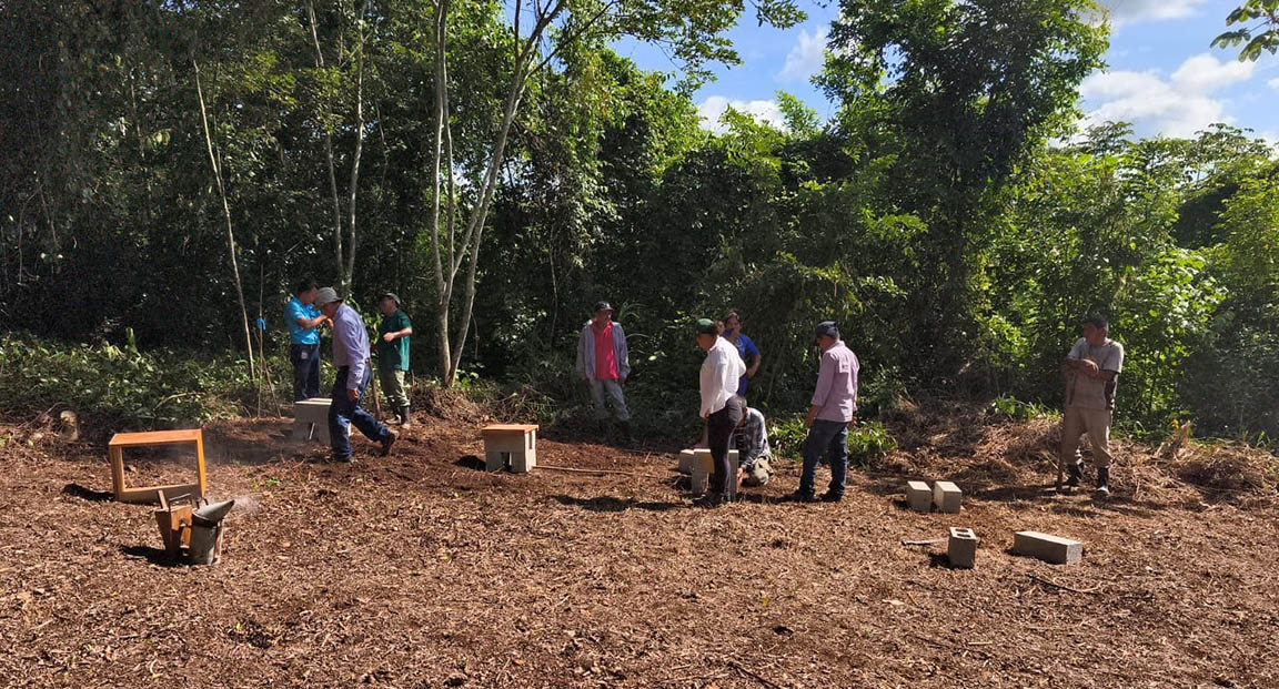 La instalación de las bases para colmenas fue desarrollada por los participantes del diplomado en Apicultura Básica, práctica que realizaron en el apiario escuela, ubicado en la comunidad El Cedrón, municipio de La Libertad, Petén.