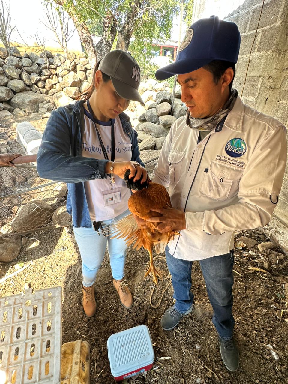 Para asegurar la producción de proteína animal, el Ministerio de Agricultura, Ganadería y Alimentación (MAGA) realizó una jornada de vacunación de gallinas ponedoras en la aldea El Quebracho, municipio de Santa Catarina Mita, Jutiapa.