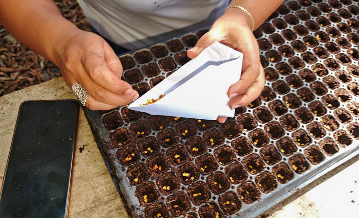 Durante la jornada fueron sembradas un total de 78 bandejas con diferentes cultivos, distribuidos de la siguiente manera: 50 de chile Cobán, 7 de berenjena, 7 de chile jalapeño, 7 de chile pimiento y 7 de tomate.