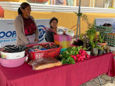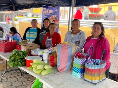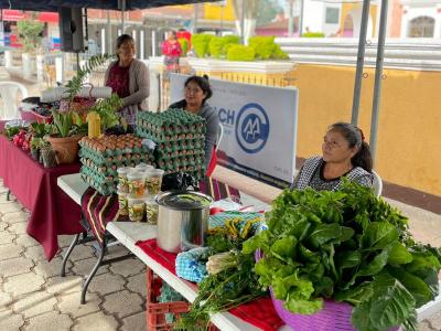 En esta actividad comercial participaron agricultoras que forman parte del Centro de Aprendizaje para el Desarrollo Rural (CADER) de la localidad, ofreciendo productos como: elotes, lácteos, soya, cilantro, acelga, entre otras hortalizas, frutas y verduras.