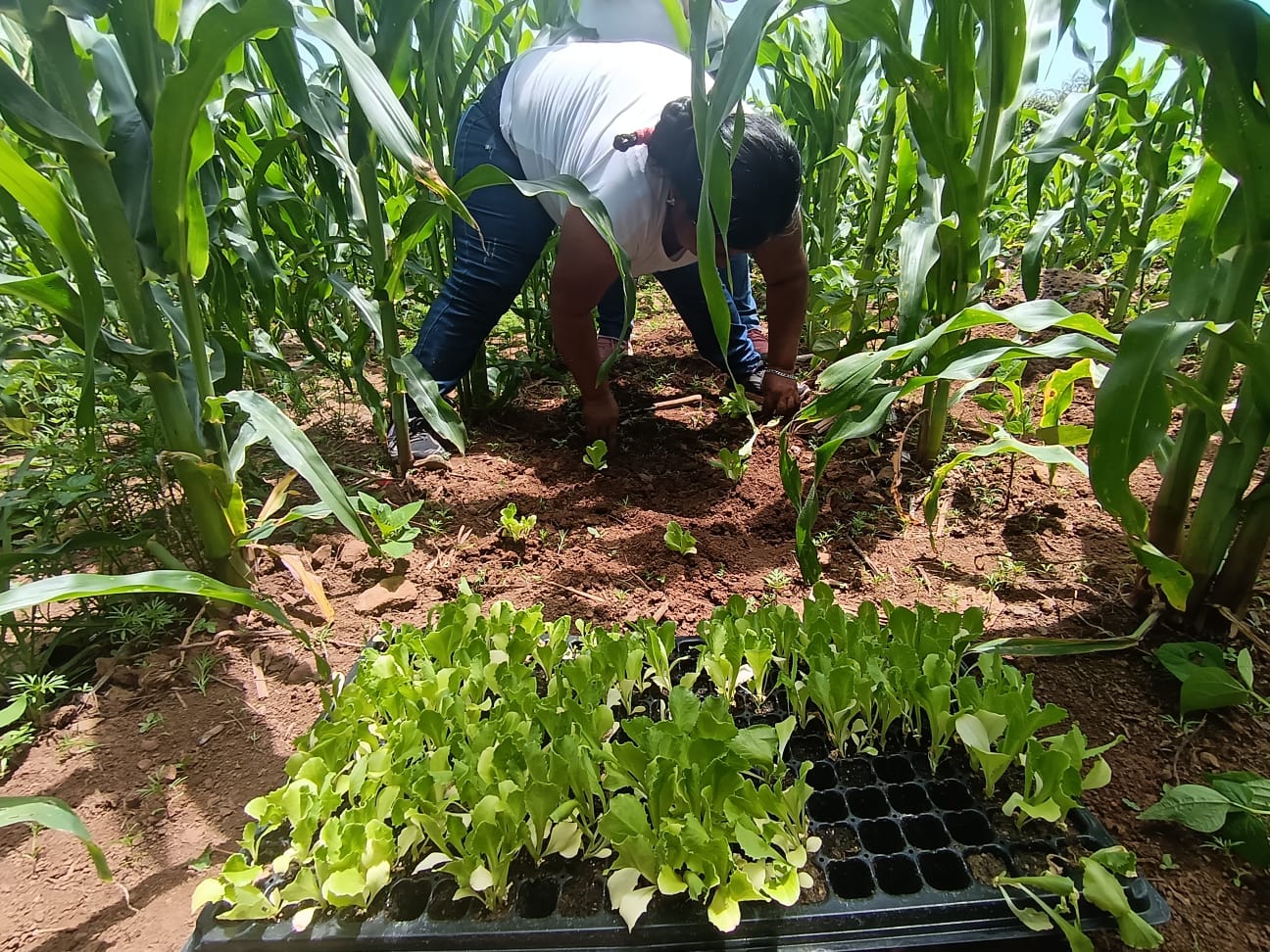 La práctica consistió en iniciar la siembra de hortalizas, cilantro, frijol y ayote, entre la siembra de plantas del maíz. Esto ayuda a mantener fortalecida la tierra con nitrógeno, las raíces del maíz le dan oxígeno al frijol, que se desarrolla utilizando la planta del maíz para sostenerse y dar una buena cosecha, la siembra de ayote favorece a mantener húmeda la tierra dándole protección a los demás cultivos.