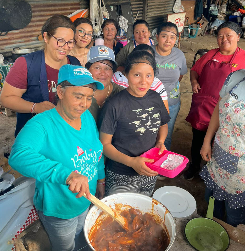Durante la jornada, las participantes elaboraron mole de plátano, una receta tradicional que permite aprovechar los cultivos locales. La capacitación técnica tuvo como punto central el proceso de preparación y las proporciones adecuadas de los ingredientes para garantizar la calidad del producto final.