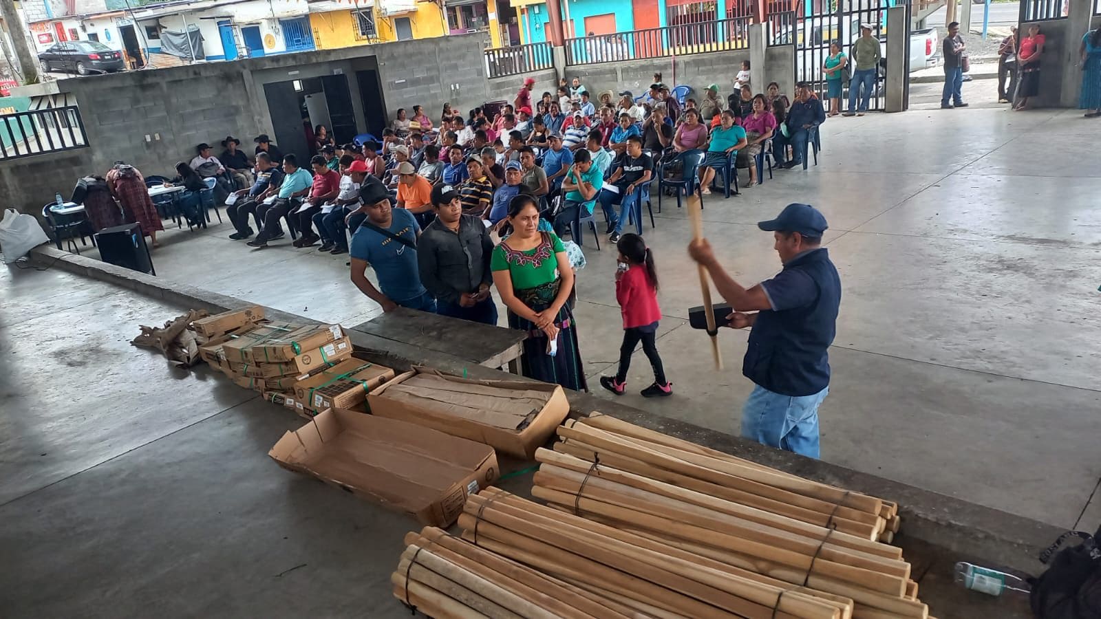 Por su parte, en la comunidad de Santa Cruz Quixayá, San Lucas Tolimán, Sololá, 100 familias agricultoras fueron beneficiadas con kits de herramientas (machetes y azadones), junto con semillas de güicoy, cilantro, cebolla, chile pimiento y tomate. Esta dotación fortalece las capacidades locales para la producción de alimentos con fines de autoconsumo.
