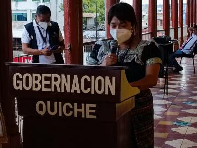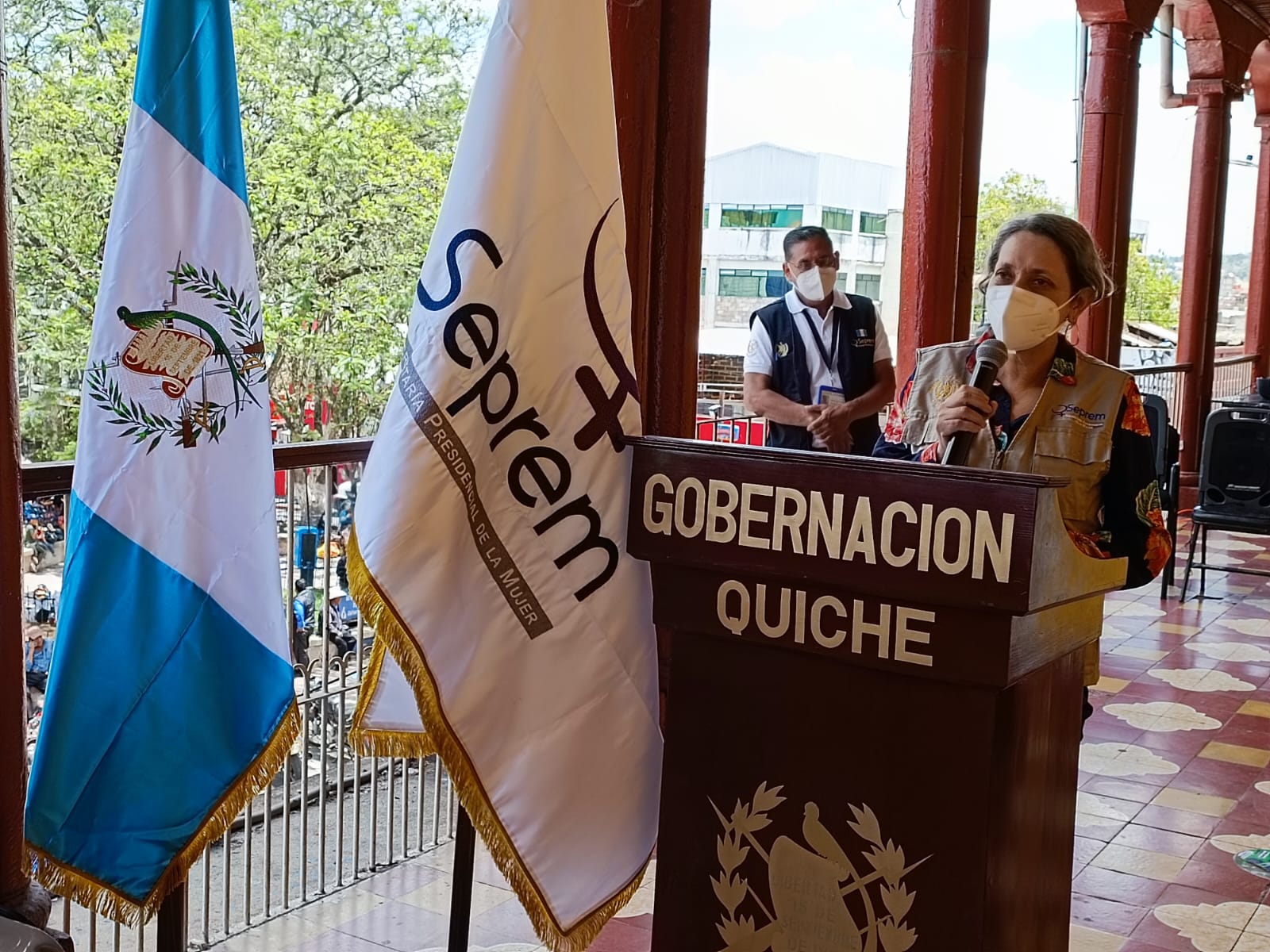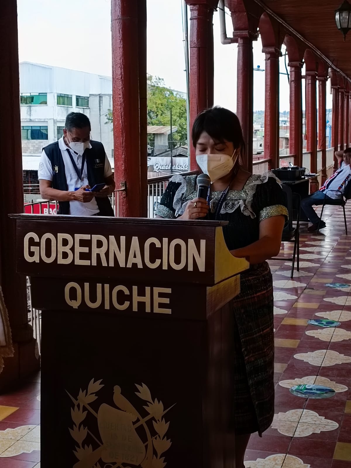 Delegada departamental de Quiche, participó en la inauguración de la oficina departamental de la Secretaría Presidencial de la Mujer en el departamento, junto con Nury Rojas, Jefa del departamento de Coordinación Estratégica, Sectorial y Territorial de la Dirección de Gestión de Políticas Públicas para la Equidad entre Hombres y Mujeres y Paola Ganes, representante de la Gobernación Departamental.