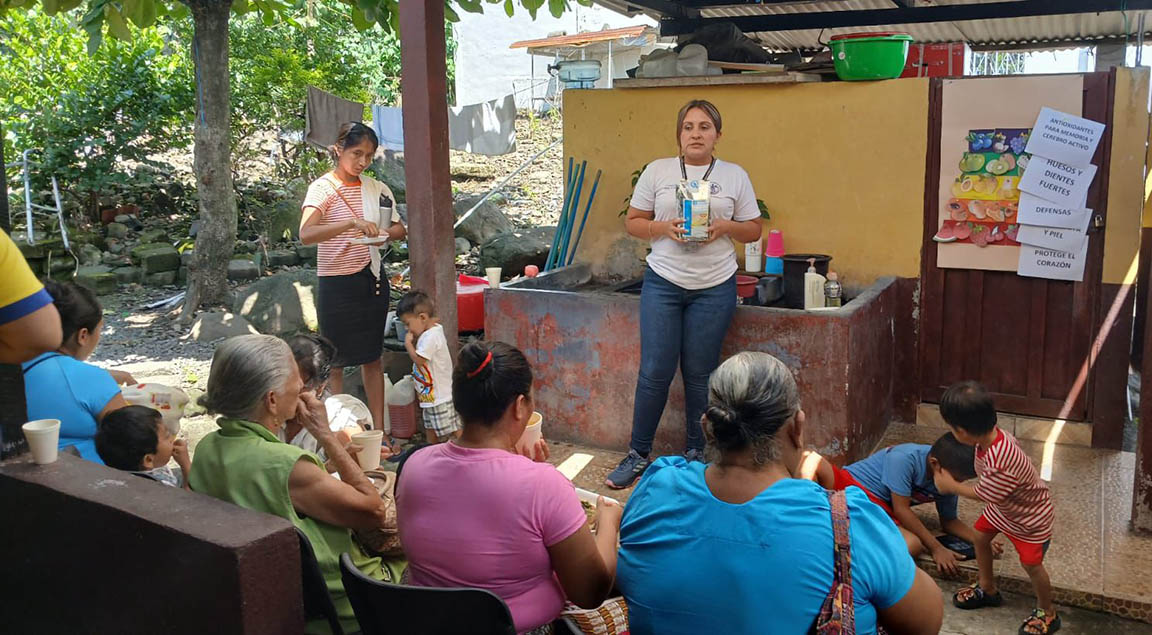 La actividad incluyó también una demostración de preparación de alimentos utilizando NutriNiños, una papilla proporcionada por el Ministerio de Salud, combinada con frutas, con el objetivo de fomentar el consumo de alimentos nutritivos en niños menores de cinco años.
