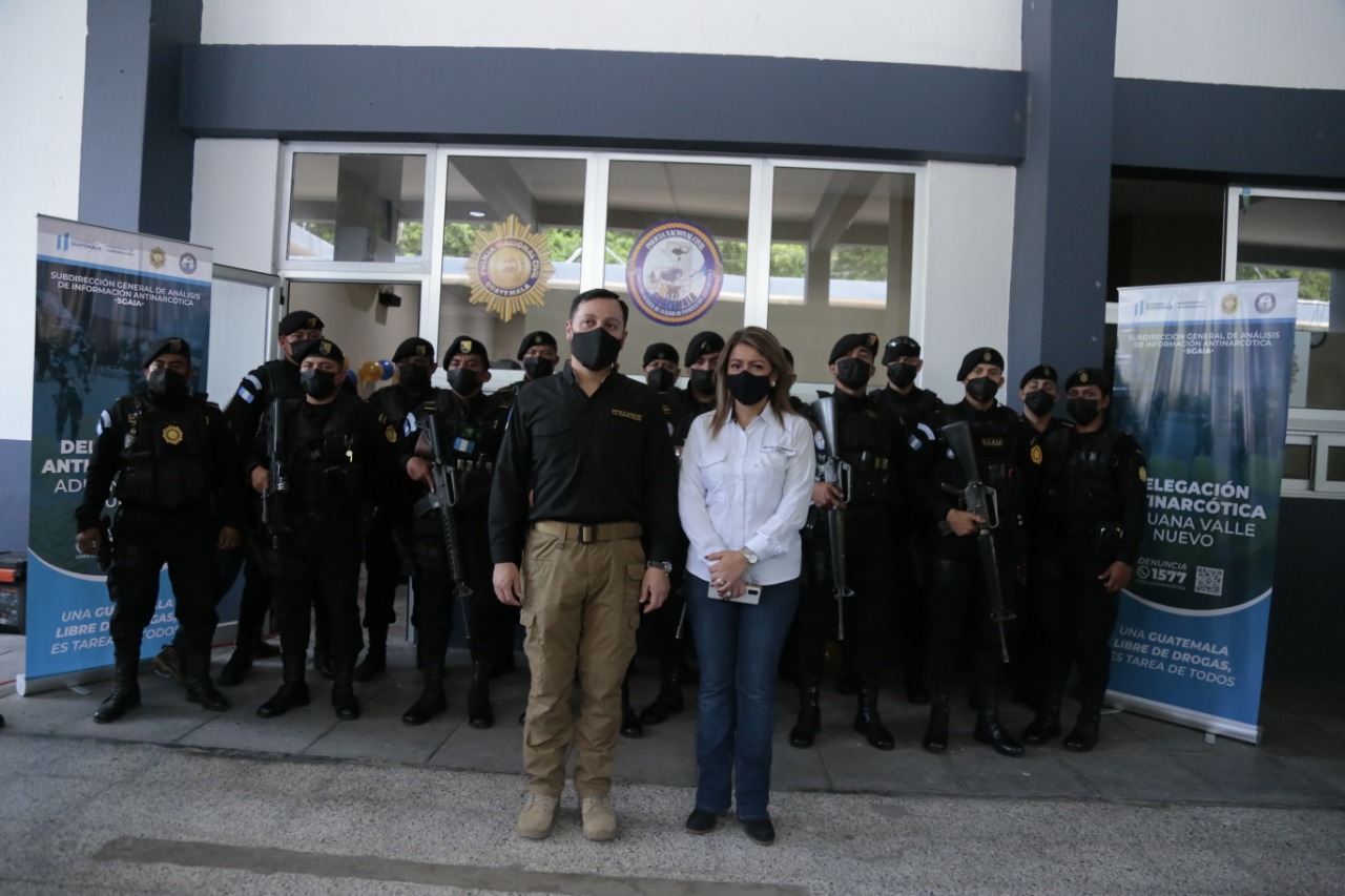 Con el objetivo de lograr la detección de ilícitos transportados por diversos medios de transporte terrestres así como la identificación y desarticulación de estructuras criminales, el Ministro de Gobernación, Gendri Rocael Reyes Mazariegos y el Quinto Viceministro Fernando Manolo Rodas De León en compañía del Intendente de Aduanas Werner Ovalle, inauguraron hoy la delegación de la Subdirección General de Análisis de Información Antinarcótica ( SGAIA) en la aduana Valle Nuevo frontera con El Salvador y Guatemala.