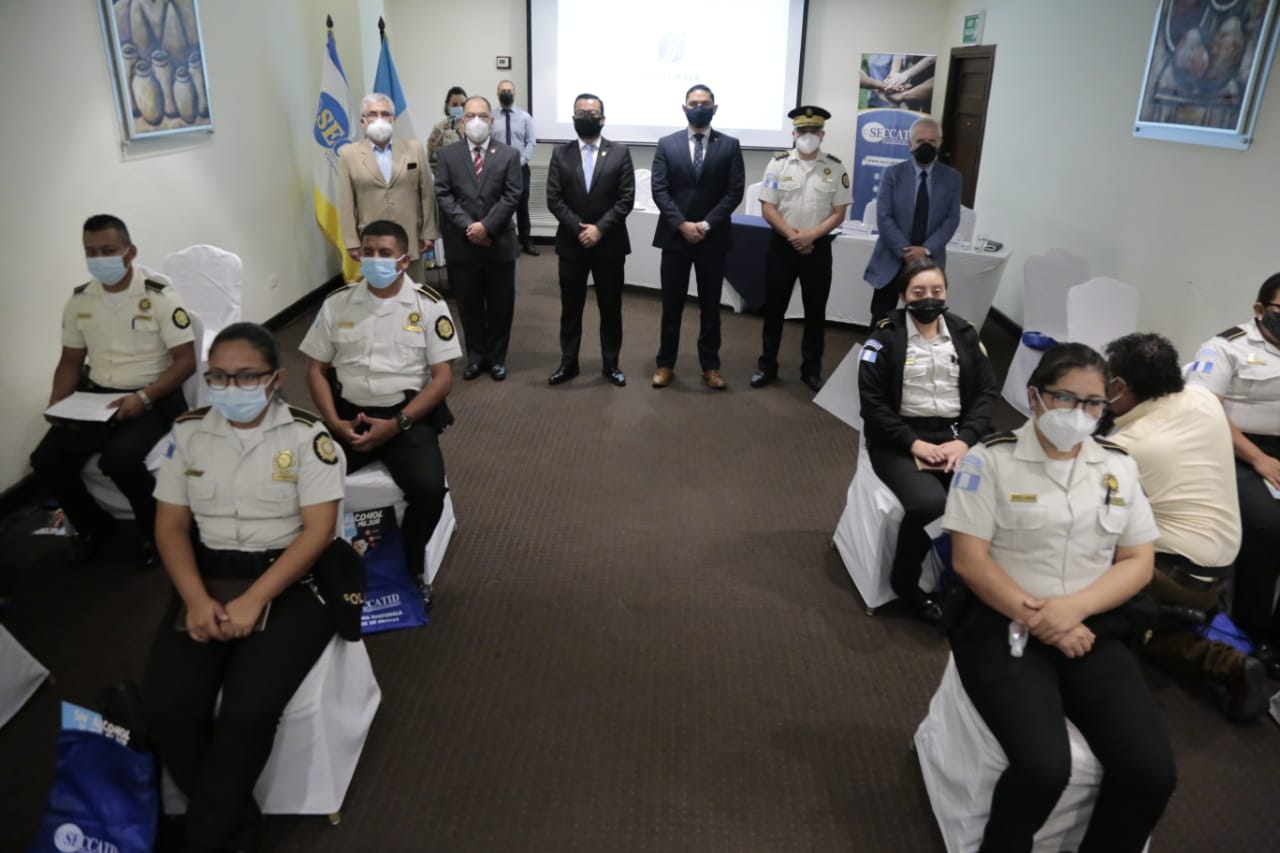 Como parte de dicha actividad, se llevó a cabo la capacitación de agentes de la Subdirección General de Prevención del Delito, de la Policía Nacional Civil (PNC), en temas orientados a erradicar el consumo y tráfico de drogas, para que sean multiplicadores del tema, en diferentes departamentos.