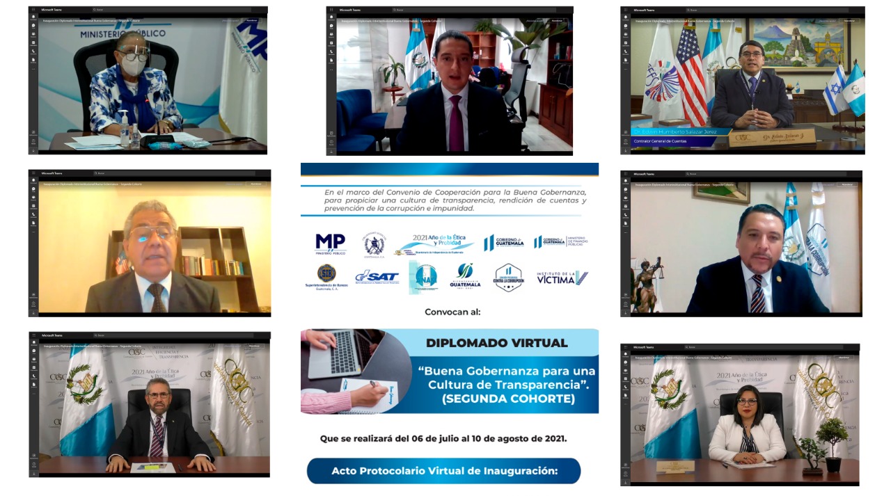 La segunda cohorte del diplomado interinstitucional virtual “Buena Gobernanza para una Cultura de Transparencia” fue inaugurada hoy por autoridades del Organismo Judicial, Ministerio Público, Contraloría General de Cuentas, Agencia para Asuntos Antinarcóticos y Aplicación de la Ley (INL) y Comisión Presidencial Contra la Corrupción.