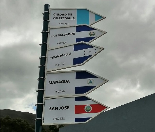 Quito, Ecuador, 17 de septiembre de 2021. Las autoridades de Ecuador inauguraron el pasado 13 de septiembre un tótem que despliega las distancias desde la Ciudad Mitad del Mundo hacia las capitales de Guatemala, Costa Rica, El Salvador y Honduras, en el marco del Bicentenario de Centroamérica.