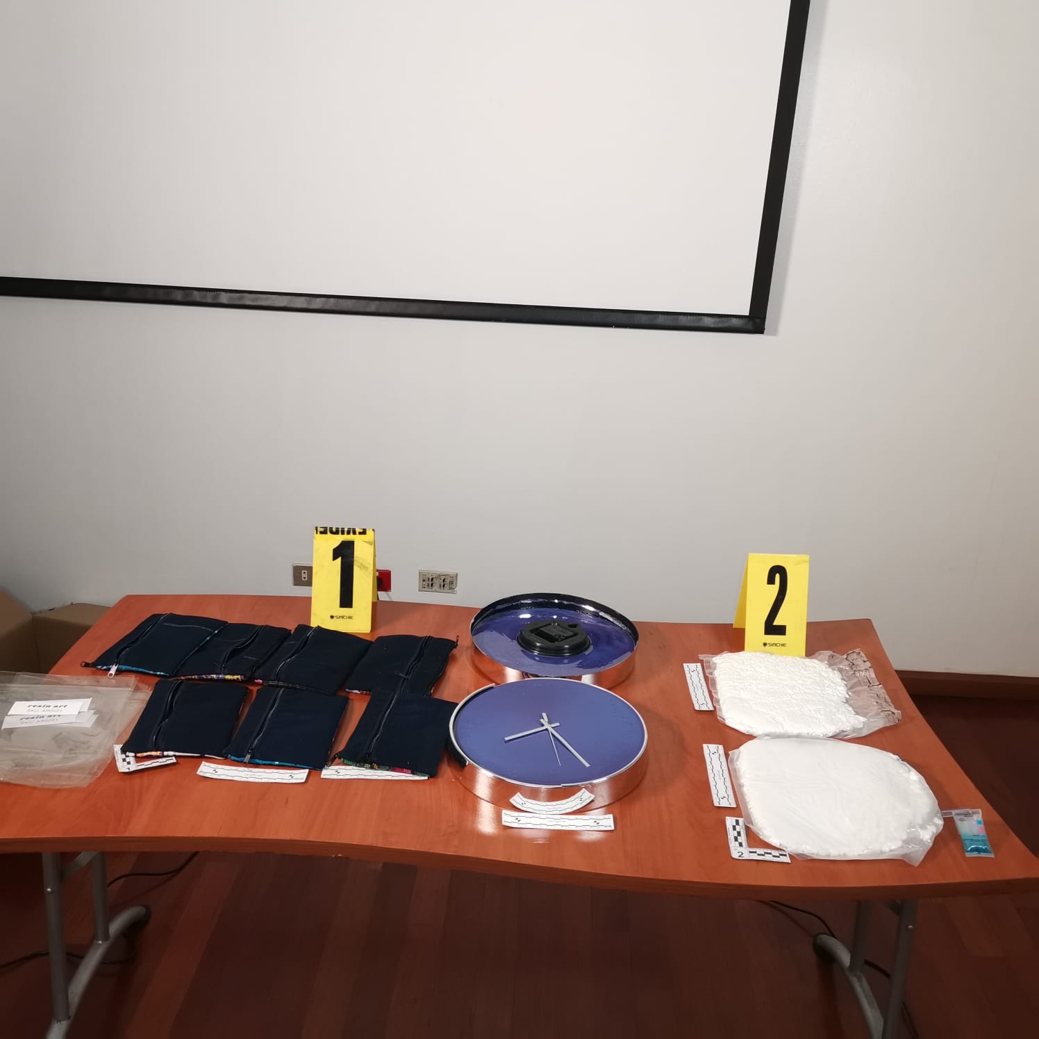 La droga se encontraba en dos bolsas transparentes de plástico, las cuales estaban ocultas en la estructura de un reloj de pared. La investigación con relación a este caso continúa para determinar la procedencia y destino de los ilícitos.