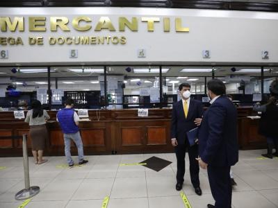 (0) De frente se observa al Viceministro de Asuntos Registrales, Roberto Alonzo (corbata amarilla), en la sede del Registro Mercantil.