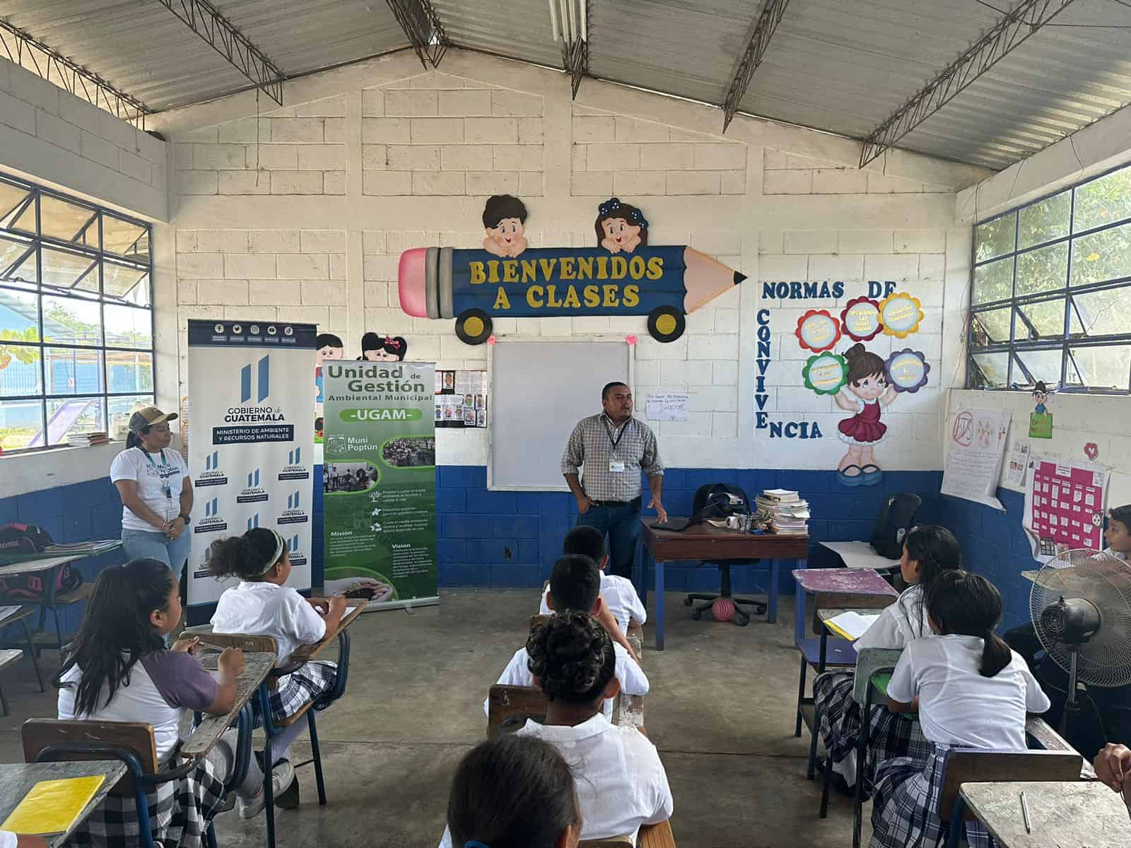 La Delegación Departamental del Ministerio de Ambiente y Recursos Naturales (MARN) en Petén trabaja en la promoción de temas ambientales en los centros educativos para que los jóvenes se conviertan en agentes de cambio en sus comunidades.