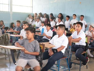 En la Escuela Oficial Rural Barrio Pioneros de la Paz del municipio de Poptún, Petén, 60 estudiantes de primaria recibieron una charla, donde uno de los temas centrales fue las buenas prácticas ambientales e importancia de los bosques.