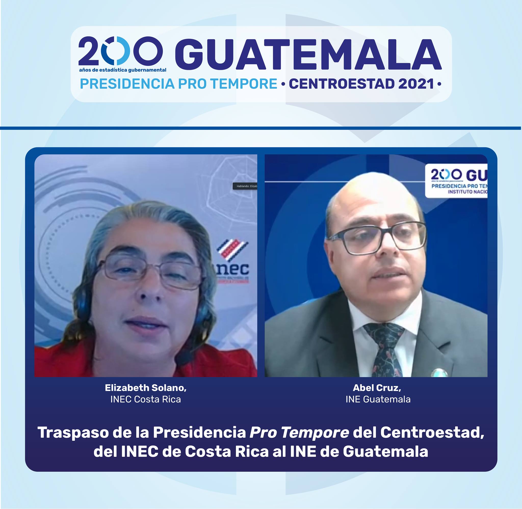 El Instituto Nacional de Estadística -INE- de Guatemala recibió el 11 de junio la Presidencia Pro Tempore (PPT) de la Comisión Centroamericana de Estadística -Centroestad- del Sistema de Integración Centroamericana -SICA-, dicha presidencia es ejercida desde 1 de julio hasta el 31 de diciembre de 2021.