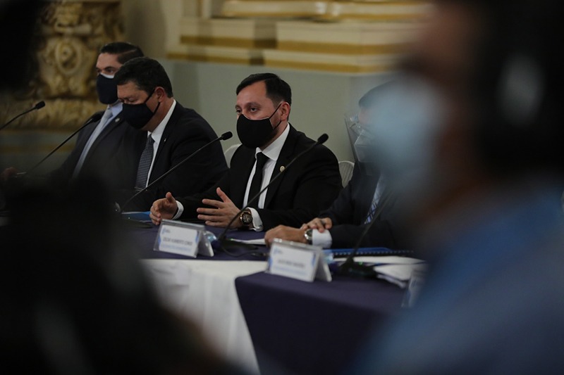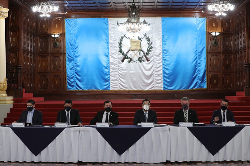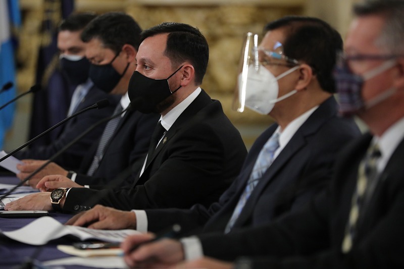 En la mesa principal se encontraba el ministro Gendrí Reyes, el viceministro de Seguridad, Carlos Franco, viceministro de Prevención de la Violencia y el Delito, Carlos García Rubio, viceministro de Tecnologías de Información y las Comunicaciones, Aldo Rene Ordóñez, viceministro Administrativo, Oscar Humberto Conde y Quinto viceministro, Fernando Manolo Rodas.