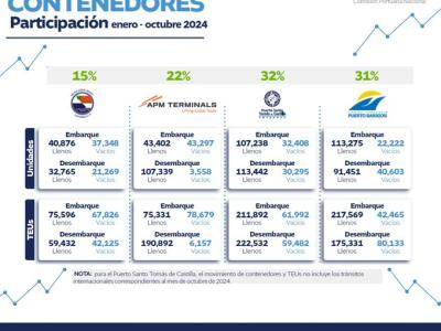 Con una movilización de 28.59 millones de toneladas métricas de carga entre enero y noviembre de 2024, y un crecimiento del 10% en el movimiento de contenedores, se generan empleos, dinamizan la economía y se crean nuevas oportunidades para los productores y exportadores del país.