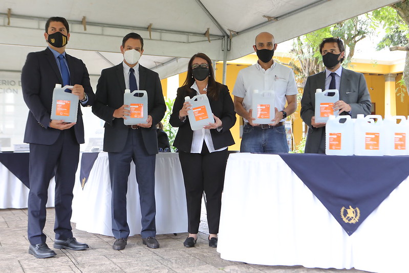 El ingenio Pantaleón entrega un donativo de 25 mil litros de alcohol en gel, lo que beneficiará a 600 escuelas. Serán priorizadas donde hay un mayor número de estudiantes, que usualmente se ubican en las cabeceras departamentales.