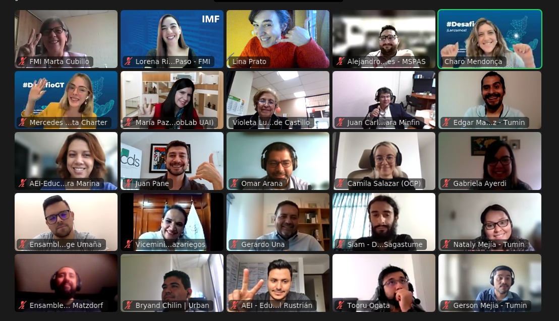 El lanzamiento del Desafío GT, una convocatoria del Ministerio de Finanzas Públicas (MINFIN) junto al Fondo Monetario Internacional (FMI), se realizó este 14 de julio con un encuentro virtual entre los desarrolladores y mentores del evento, así como la presentación de los diez equipos participantes de toda Latinoamérica.