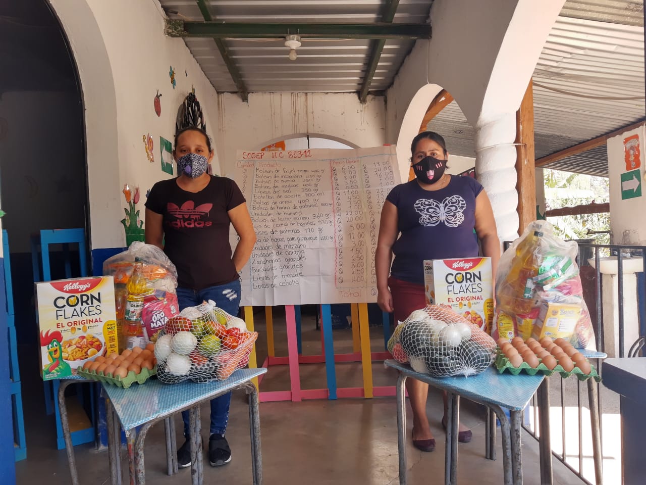 En los Centros de Atención y Desarrollo Infantil (CADI), mamás y papás se acercan para recibir la bolsa que contiene granos básicos, cereal, atol, frutas, fideos, huevo, leche entre otros alimentos.