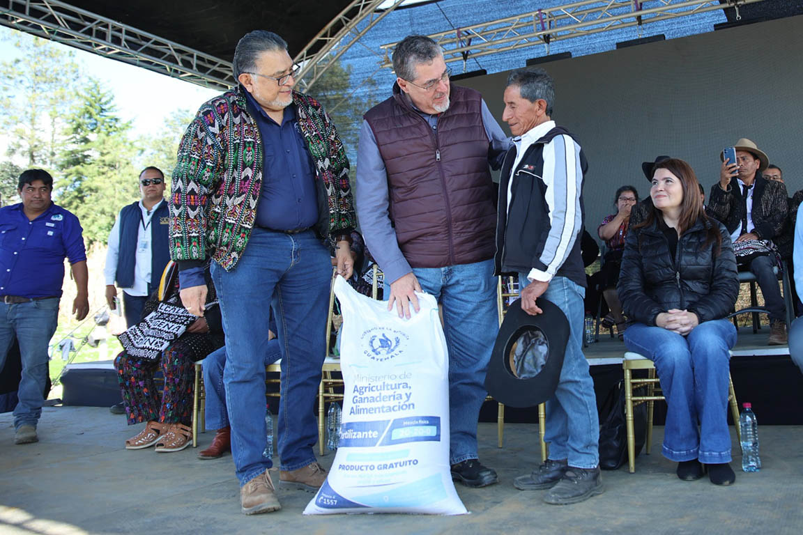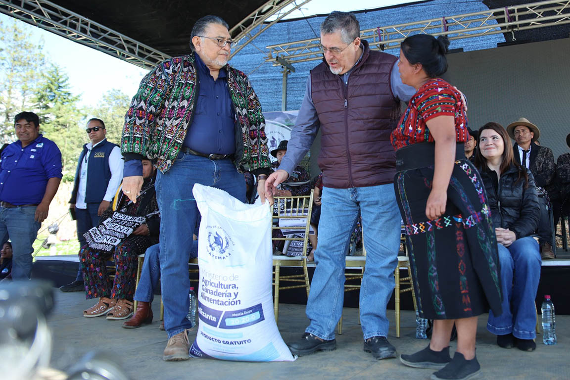 Por su parte el presidente Bernardo Arévalo indicó: “Estamos demostrando lo que un Gobierno puede hacer cuando trabaja con su pueblo. Hoy venimos a entregar fertilizante como parte del Bono Campesino para apoyarlos como agricultores y agricultoras, es parte del desarrollo que es justo que todos tengamos en el país”.