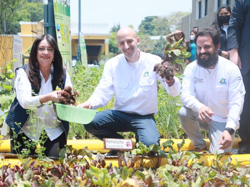 Como parte de las actividades contempladas durante la “Semana de la Amistad entre Guatemala e Israel”, la Ministra de Educación, el Embajador del Estado de Israel en Guatemala, autoridades, funcionarios, invitados especiales y estudiantes de la Escuela Normal de Maestras para Párvulos Dr. Alfredo Carrillo Ramírez, realizaron la cosecha en el Huerto Pedagógico, actividad en la que se cultivan hortalizas y vegetales y, de forma simbólica, también se cosecha la amistad entre ambas naciones.