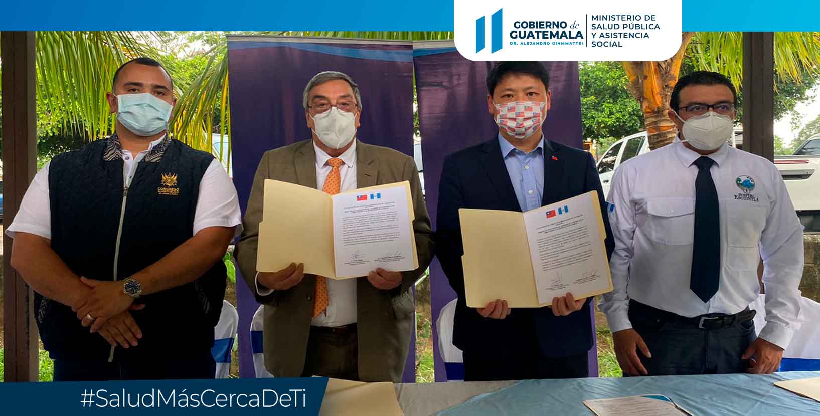 El ministro de Salud, Dr. Francisco Coma, el Sr. Embajador de China-Taiwán, Li-Cheng Cheng y autoridades locales, participaron en el Lanzamiento del inicio de trabajos de las mejoras en el Hospital de Escuintla, que incluye el remozamiento de parqueo, rampas de acceso, bodega y muro perimetral.