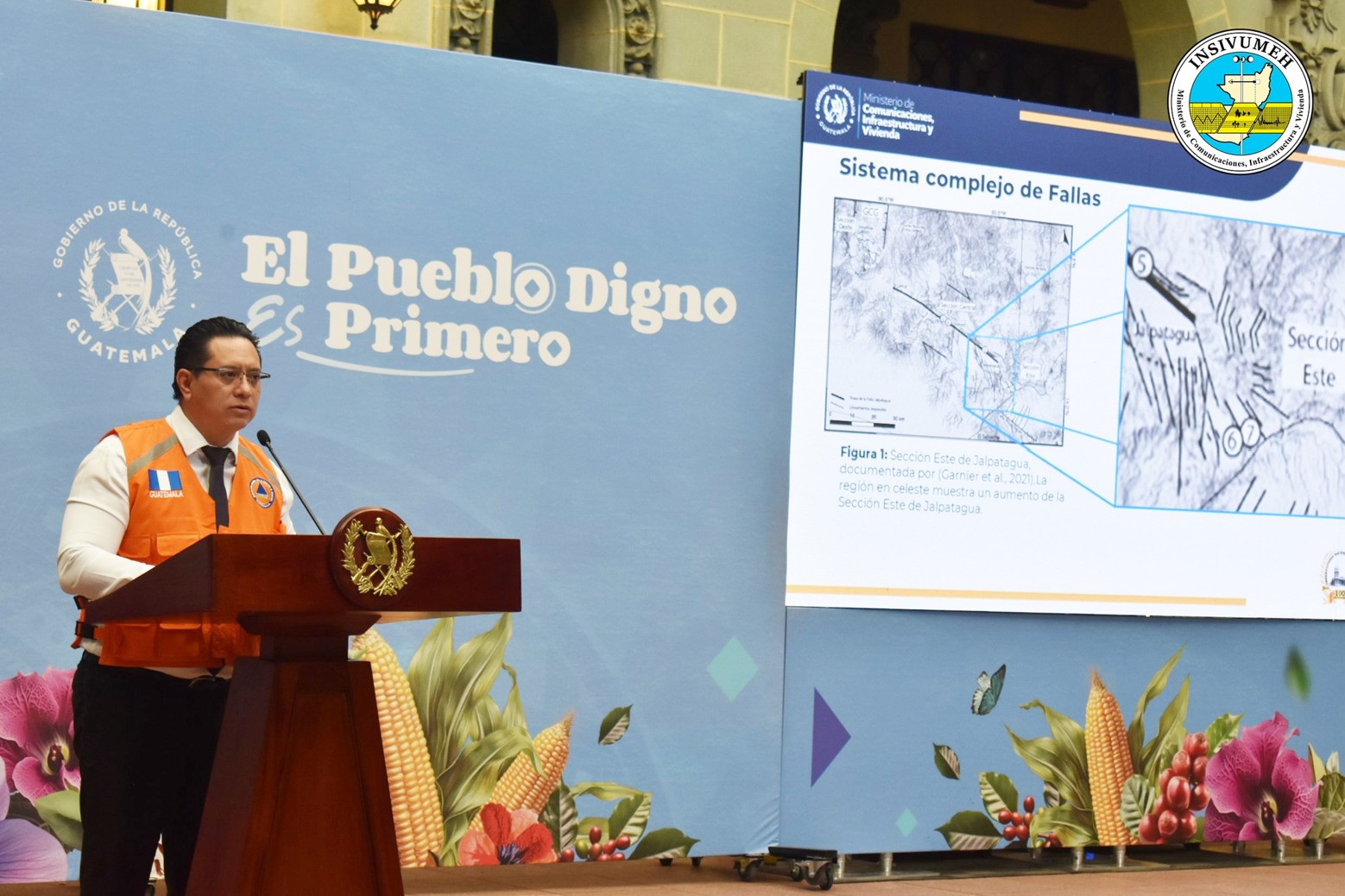 Durante la actividad “La Ronda” realizada en el Palacio Nacional de la Cultura, el Ingeniero Edwin Rojas, director del Instituto Nacional de Sismología, Vulcanología, Meteorología e Hidrología (INSIVUMEH), indicó que se continúa monitoreando esta actividad para determinar el comportamiento tectónico en el área, a través de la red de estaciones sísmicas instaladas en el sector.