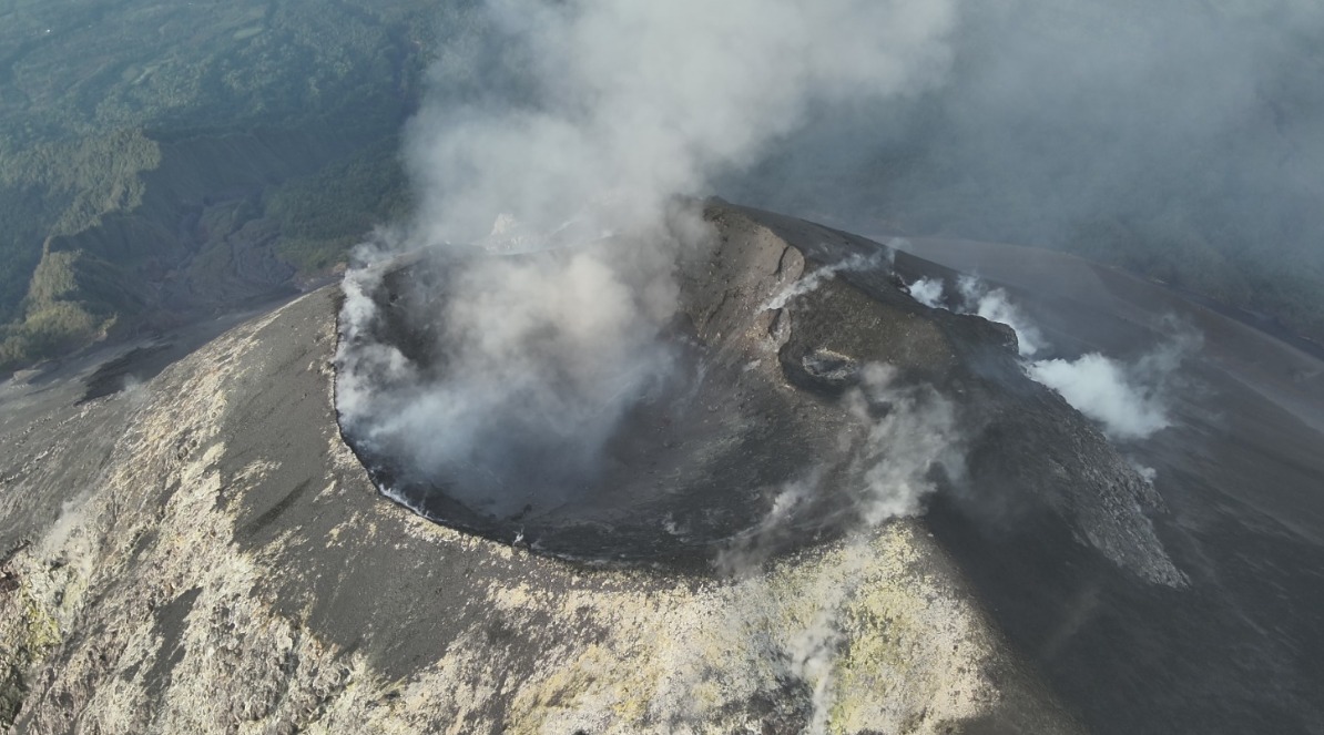 Tras una erupción más efusiva, se ha observado la presencia de columnas con abundante desgasificación e incandescencia que cubren completamente el cráter y la parte alta del flanco oeste.