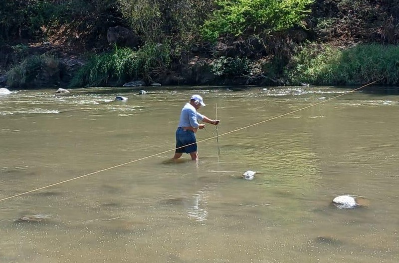 La actividad consistió en la ejecución de un aforo por vadeo, un método técnico que permitió medir el caudal del río como profundidades, velocidades y nivel hidrométrico en una sección transversal del cauce. Este procedimiento fue fundamental para validar y actualizar los registros de la estación durante la época seca.
