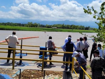 El trabajo para sanear el río Motagua no se detiene, y en seguimiento a las acciones que se desarrollan, las autoridades del Ministerio de Ambiente y Recursos Naturales (MARN), junto a representantes de la Secretaría de Recursos Naturales y Ambiente de Honduras visitaron la desembocadura del afluente, en la aldea el Quetzalito, Puerto Barrios, Izabal.