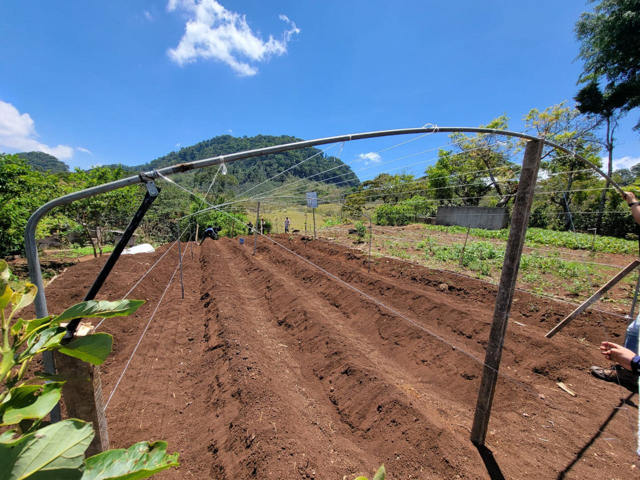 En la comunidad del Tablón de Cayur, en Olopa, Chiquimula, se realizó la instalación de macro túneles para el cultivo de tomate, lo cual brinda a los agricultores un fortalecimiento de capacidades para mejorar las cosechas.