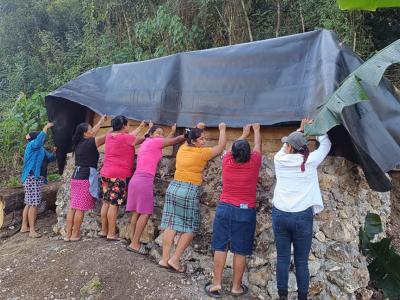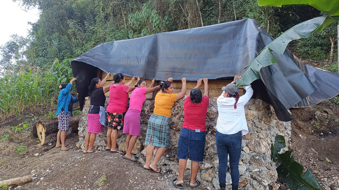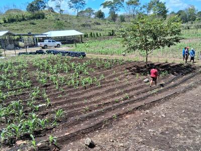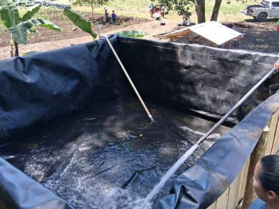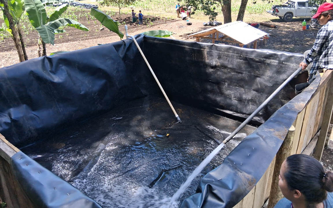 Se realizó la instalación de una geomembrana para la captación y almacenamiento de agua, junto con un sistema de microriego para la implementación de un huerto mixto en el municipio de Poptún, Petén.