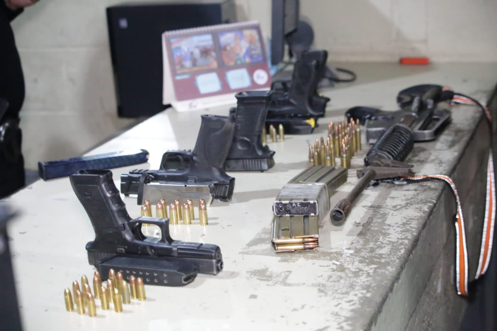Dichas personas se conducían abordó del vehículo tipo automóvil, con placas de circulación P-607GJC, en el cual personal de PNC realiza un registro superficial a las personas, pero en el interior del carro localizan un arma calibre 9 milímetros con su respectiva tolva y 16 municiones; un arma de fuego Smith & Wesson calibre 45 mm con su tolva y 10 municiones; otra Glock calibre 40 con su respectiva tolva y 10 municiones; una Tauros calibre 9 mm, con su tolva y 13 municiones; una Girson calibre 40, la tolva y 10 municiones y un fusil AR15 con 2 tolvas y 30 municiones.