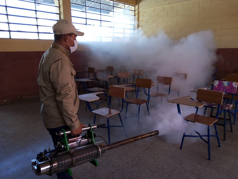 Con esto se busca disminuir los riesgos de casos de dengue y proteger a la población estudiantil en inmuebles libres de zancudos. La fumigación se acompaña con la eliminación de chatarra y demás objetos que sean foco de criaderos.