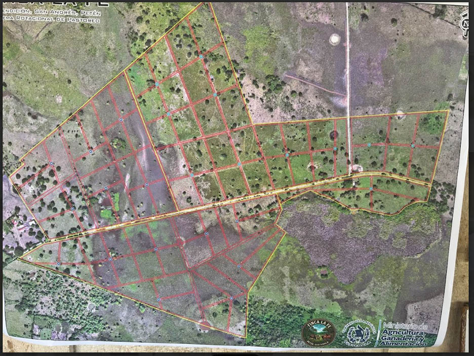 La propiedad visitada pertenece a Oscar René Mejía Montepeque y Velter Mauricio Ruíz Recinos, cuenta con una extensión de 13 caballerías. De esta superficie, al menos dos caballerías (aproximadamente 90 hectáreas) ya han sido establecidas bajo el nuevo modelo productivo, convirtiéndose en un referente para otros productores.