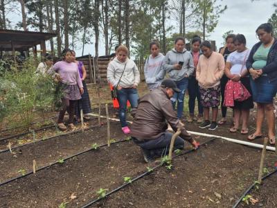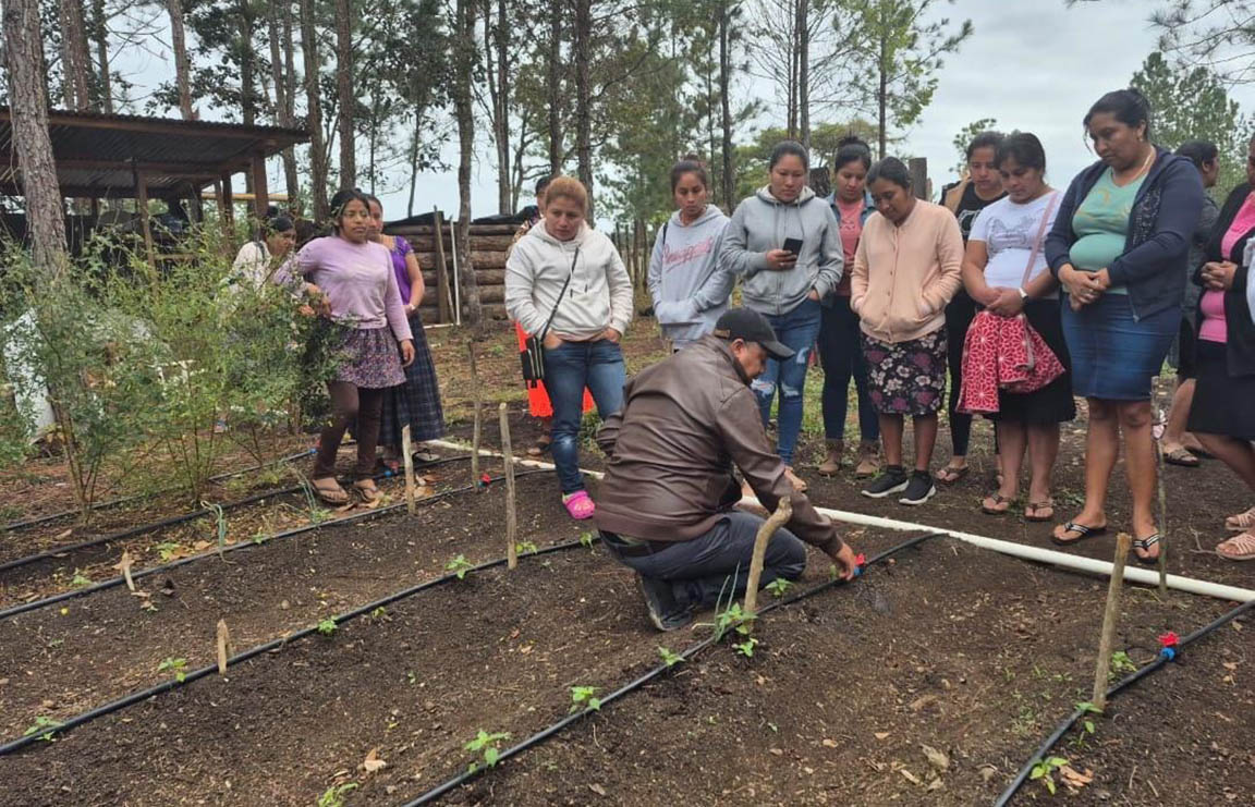 Durante una gira de campo realizada junto con los integrantes del Centro de Aprendizaje para el Desarrollo Rural (CADER), de las comunidades de Poxté y La Canoa, del municipio de Poptún, Petén, se realizó un intercambio de experiencias relativas al proceso de establecimiento y producción de huertos mixtos con sistemas de riego por goteo