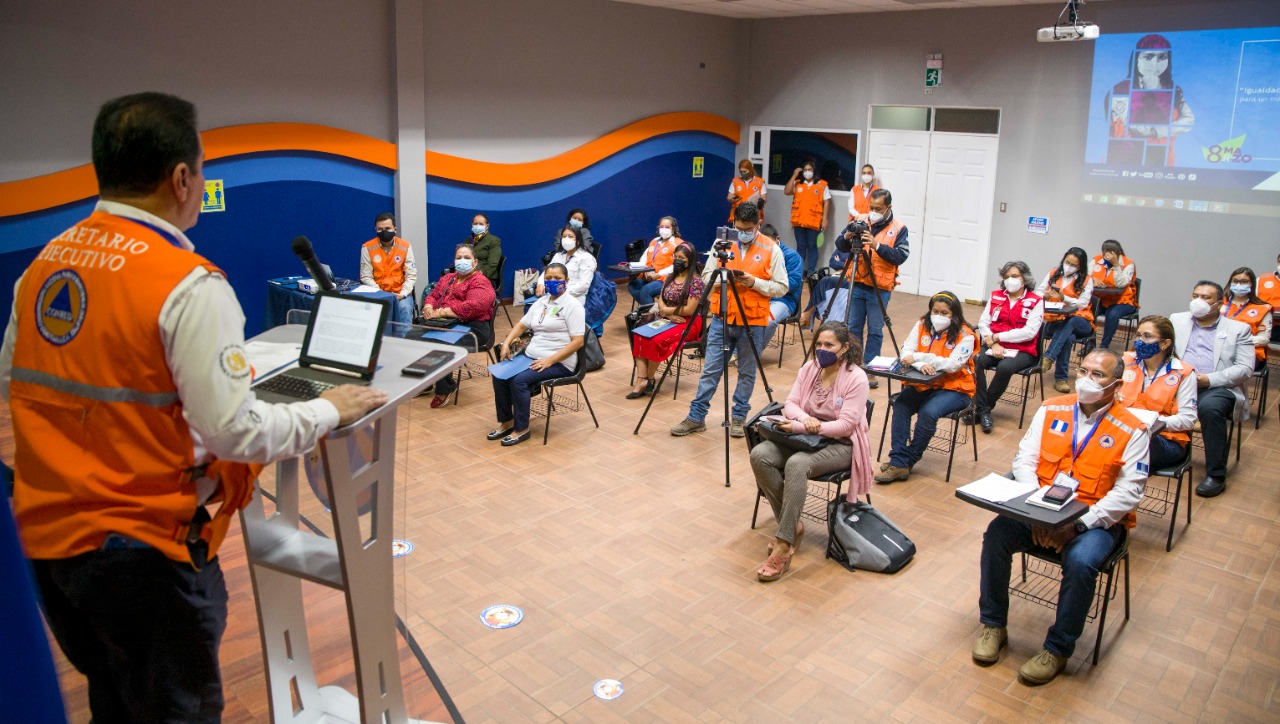 Como parte del acto protocolario, estuvieron presentes el Secretario Ejecutivo de la CONRED, Oscar Estuardo Cossío Cámara, y la Representante de País del Programa de las Naciones Unidas para el Desarrollo -PNUD- en Guatemala, Ana María Díaz, quienes brindaron las palabras de bienvenida a las lideresas en la reducción de riesgo a desastres.