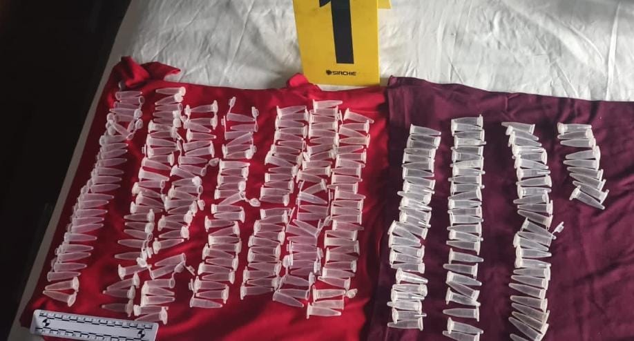 A la citada persona se le decomisaron 15 envoltorios con cocaína, 259 “colmillos” vacíos, una pesa electrónica, tres celulares y una pistola que portaba de manera ilegal, con un cargador y nueve municiones disponibles.