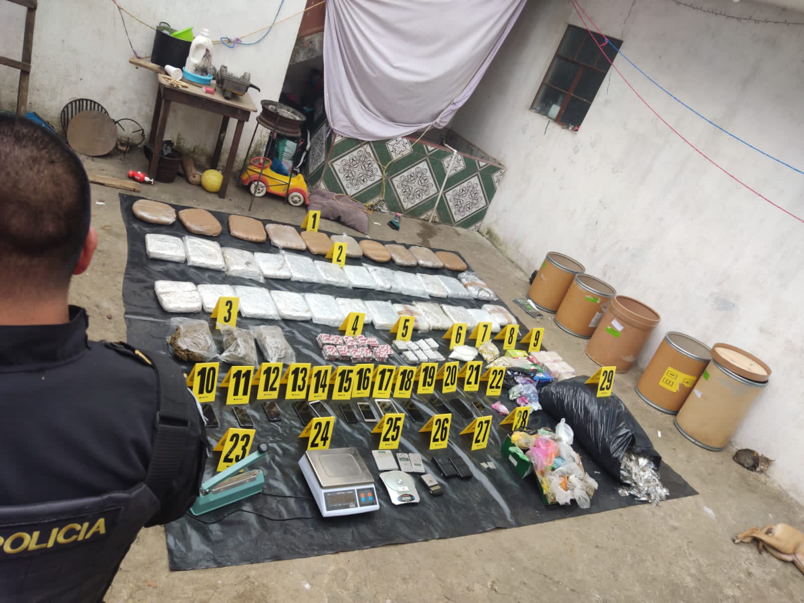 Los mandos policiales informaron que también se incautó 11 dispositivos móviles, 1 tablet, 1 sellador de bolsas eléctrico, 16 balanzas digitales; y Q975 en efectivo.