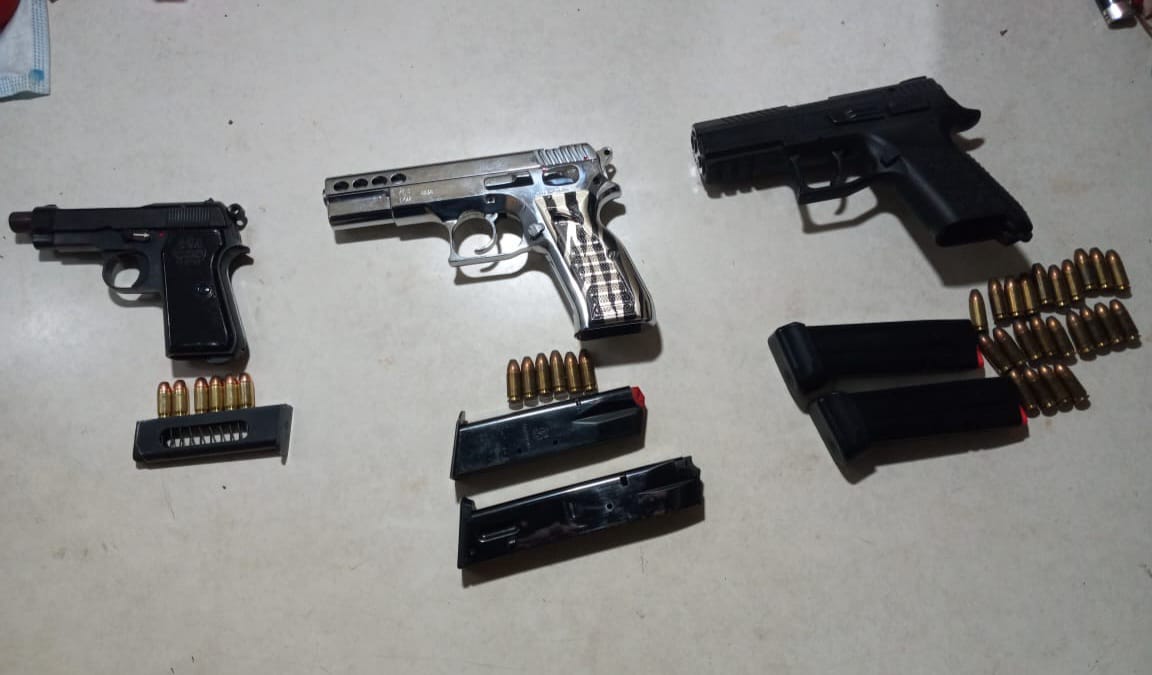 En las viviendas donde se efectuaron los cateos fueron decomisadas 3 armas de fuego, 35 municiones 9 milímetros, 10 celulares; además, personal policial solicitó 18 solvencias ciudadanas y 3 por vehículos.