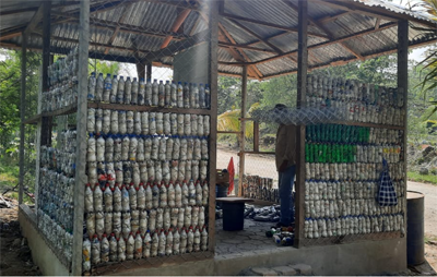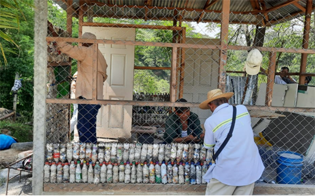 Los ecoladrillos son elaborados con botellas plásticas de 650 mililitros, estas se rellenan con bolsas pláticas y empaques de golosinas. Con estos ecoladrillos se construirá una caseta en la entrada dell basurero municipal de Morales, y permitirá hacer conciencia sobre la importancia de reciclar, reutilizar y reducir, informó Ruby Coleman de la delegación del MARN.