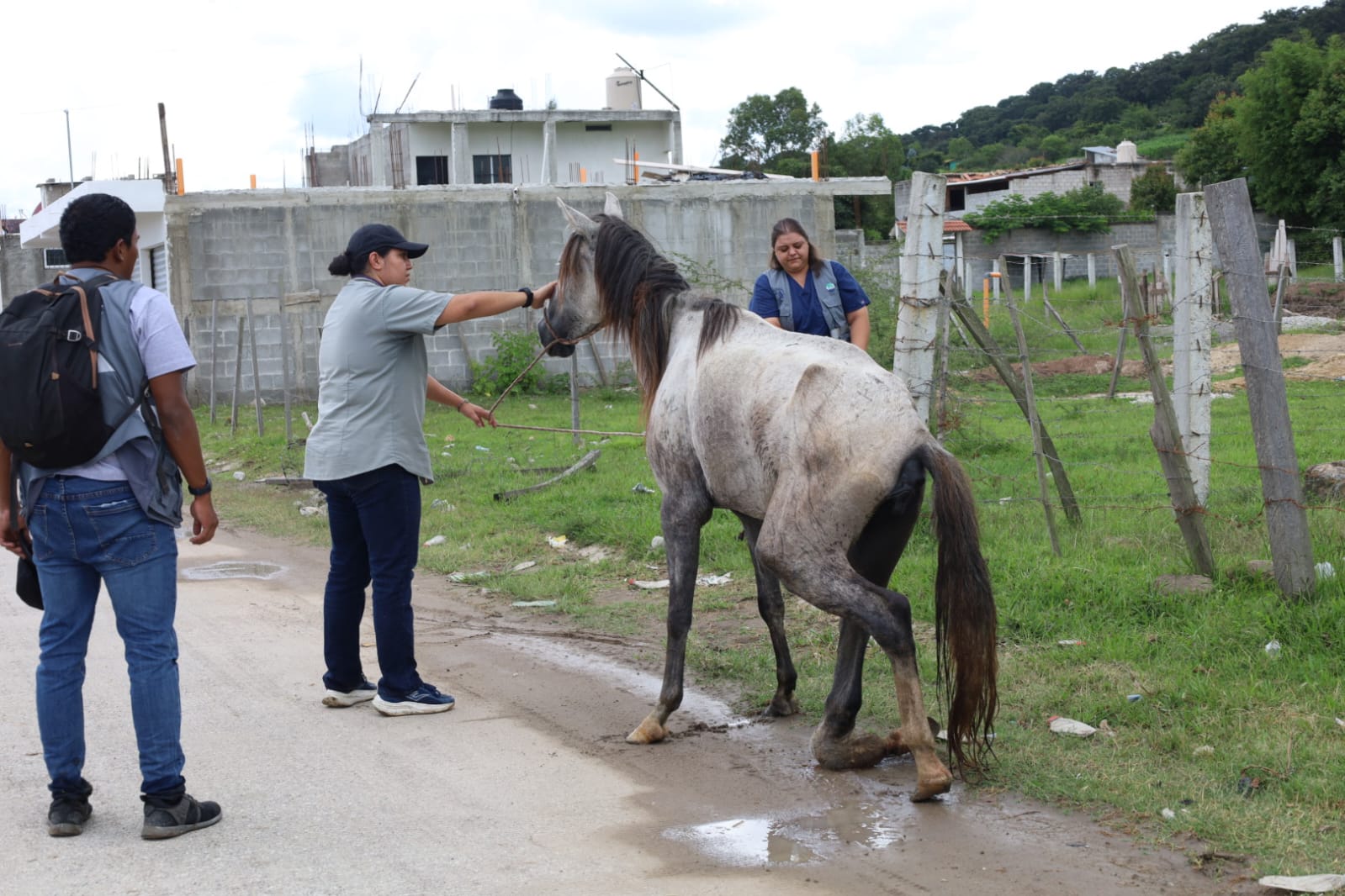 El caballo se encontraba deambulando en la vía pública en la colonia Los Pinos, Barrio Llano Grande, Jalapa, situación que fue alertada por vecinos en las redes sociales.