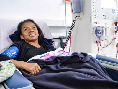Ella es una de las miles de pacientes que asiste periódicamente a UNAERC para recibir su tratamiento de hemodiálisis, el cual sustituye la función renal, filtra las toxinas y el agua de la sangre, ayuda a controlar la presión arterial y a equilibrar minerales importantes como lo hacen los riñones cuando están sanos. Cada ocasión que recibe este tratamiento dura aproximadamente tres horas.