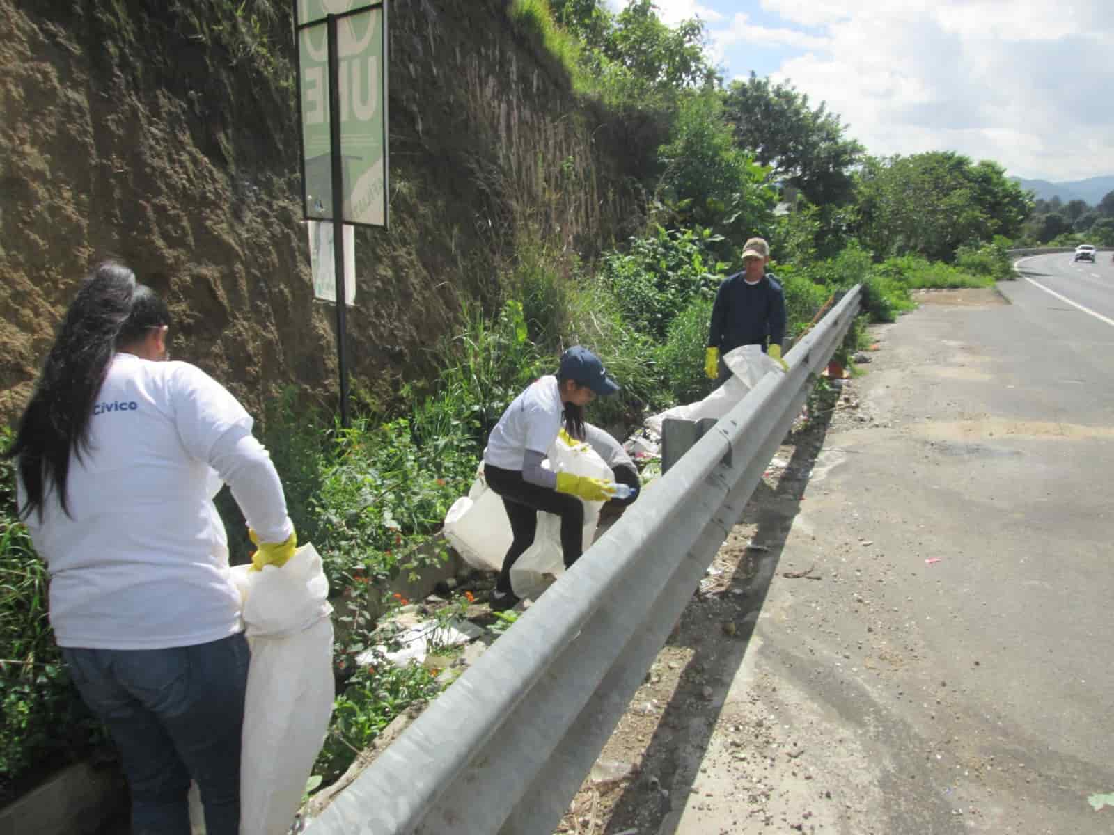 La delegación de Chimaltenango del Ministerio de Ambiente y Recursos Naturales (MARN) hizo una jornada de limpieza en el kilómetro 58 del Libramiento de Chimaltenango, Chimaltenango.