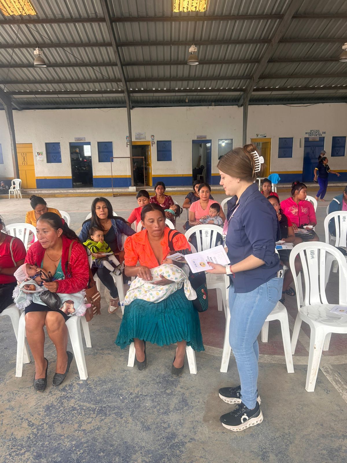 Con un enfoque cercano y educativo, la profesional explicó cómo preparar recetas nutritivas y balanceadas para favorecer el aumento de peso y talla en los niños. Entregó un trifoliar informativo con preparaciones sencillas que las familias pueden replicar en sus hogares.