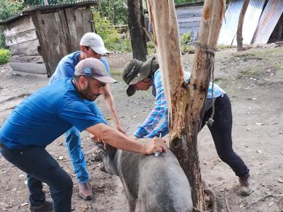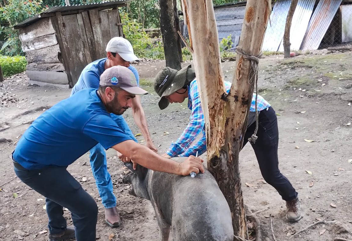 También se aplicaron vitaminas y desparasitantes a los porcinos, fortaleciendo su salud y contribuyendo al desarrollo sostenible de la producción local. Esta iniciativa tiene como objetivo mejorar la seguridad alimentaria y la economía de las familias productoras rurales.