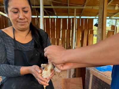 Durante la actividad se aplicó la vacuna triple aviar a gallinas criollas, en apoyo a las familias que mantienen sistemas avícolas de autoconsumo.
