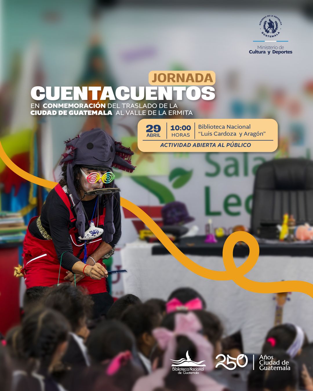 En conmemoración del traslado de la Ciudad de Guatemala al Valle de la Ermita, te invitamos a disfrutar de una jornada especial de cuenta cuentos en la Biblioteca Nacional.